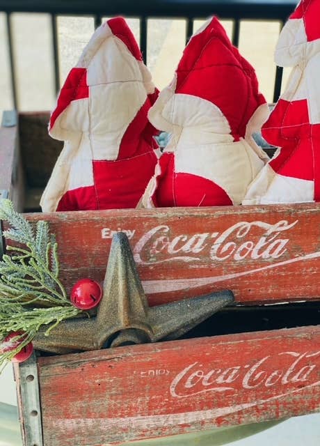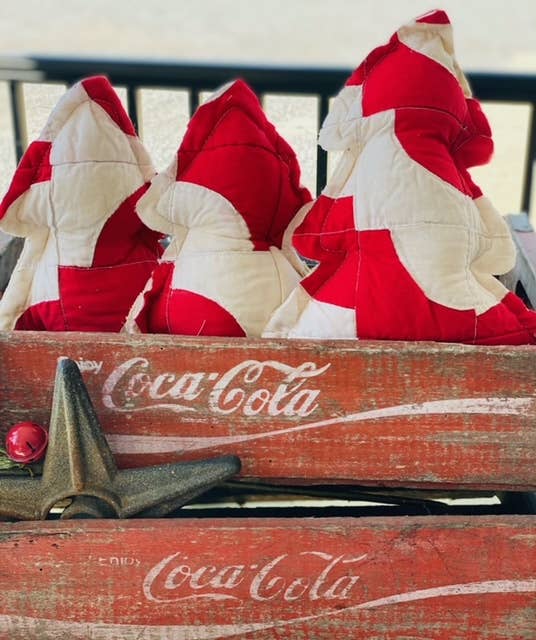 Add a touch of rustic charm to your holiday decor with these delightful Upcycled Quilt Fabric Christmas Trees! Handcrafted with love and care, these unique trees are made from vintage quilt materials, ensuring a one-of-a-kind addition to your seasonal display. Whether you choose to use them in a wreath or in a basket, these 10-inch tall by 9-inch wide trees are sure to bring warmth and nostalgia to your home this holiday season.