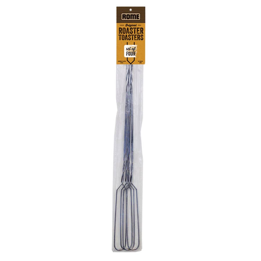 Rome's Roaster Toaster Forks are classic marshmallow forks that have been made by Rome since the early 1970s. Perfect for an impulse marshmallow toast, the roaster toaster fork is made from chrome-plated steel and packed 4 forks to a retail pack poly bag. 20" overall length.
