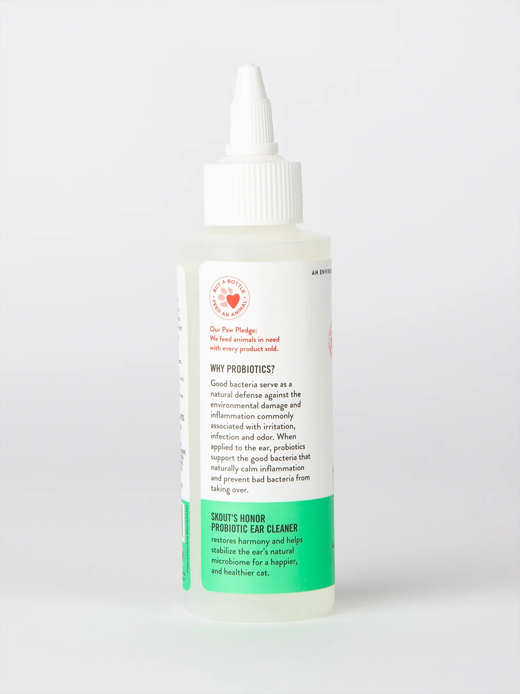 Our probiotic cat ear cleaner gently cleans, soothes and protects dirty, itchy & irritated ears. It helps to restore harmony and stabilize the ear's natural microbiome for a happier, healthier-looking cat. Our probiotics continue to fight against harmful bacteria in the ears for up to 2 weeks!